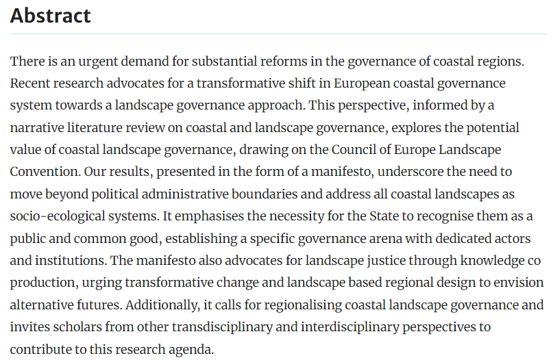A manifesto for coastal landscape governance: Reframing the relationship between coastal and landscape governance